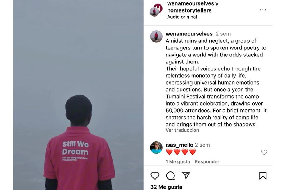 Une de ces opportunités comprend Nous nous nommonsun prochain documentaire qui présente à la fois Lipanda et Kahitani. Le film suit un groupe de poètes adolescents de Dzaleka alors qu'ils se préparent au festival Tumaini. Tourné en octobre dernier, le projet explore comment l'art peut offrir de l'espoir, de la résilience et un sentiment d'identité pour les jeunes réfugiés confrontés à des barrières systémiques.